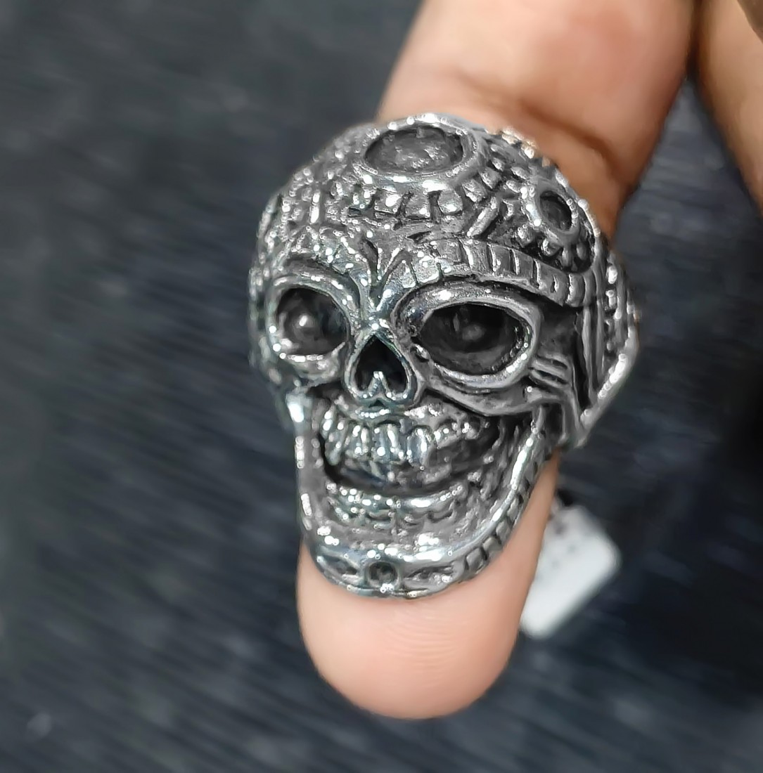 Antique Finish Skeleton Face Ring – 925 Silver Craftsmanship