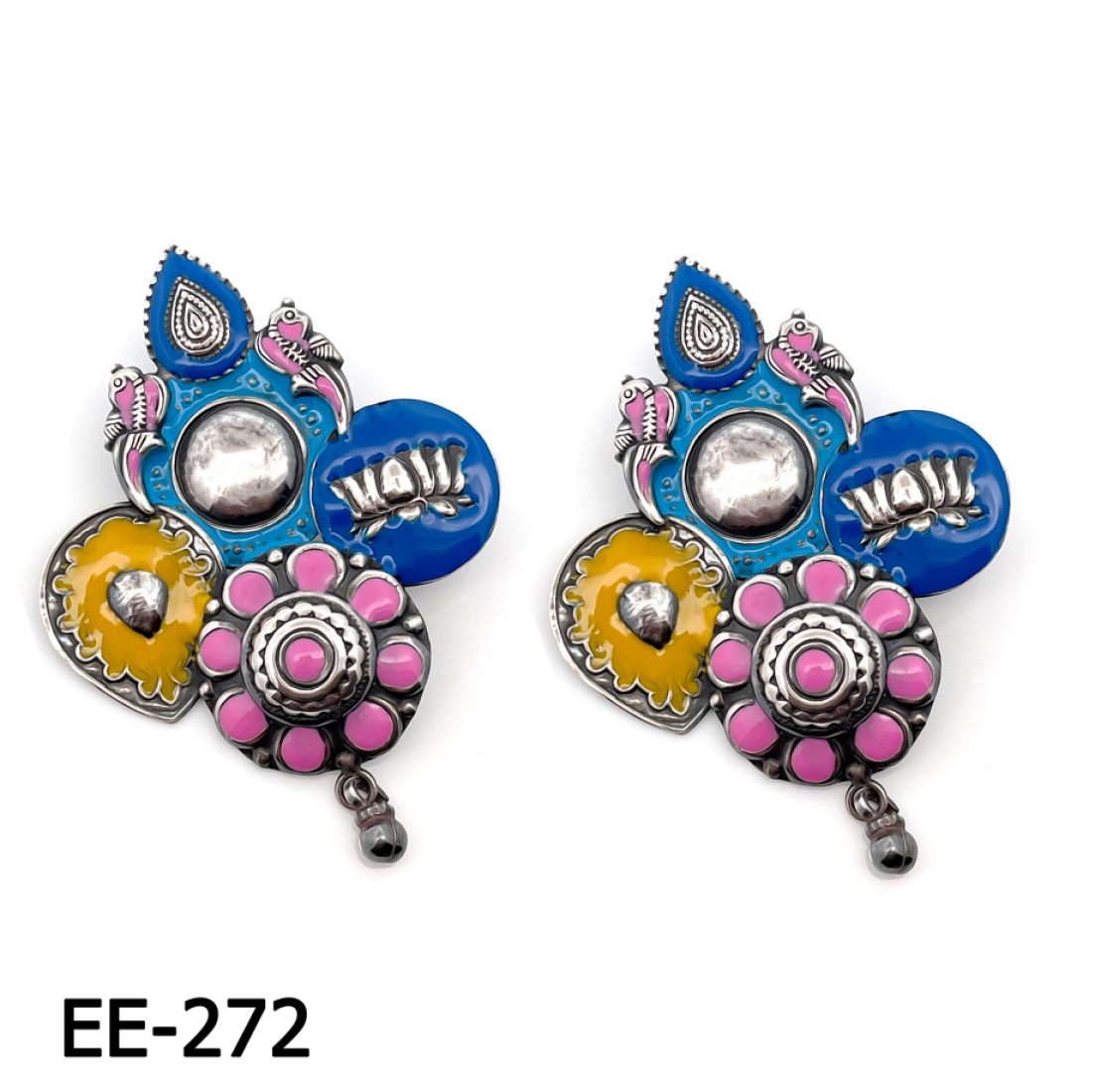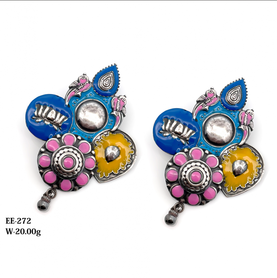These earrings are truly a vishesh aakarshan ka kendra (center of attraction) — their bright colors and fine silver detailing radiate joy, elegance, and artistry. Made from genuine 925 sterling silver, they offer lasting shine, comfort, and quality craftsmanship that reflects both heritage and contemporary style.