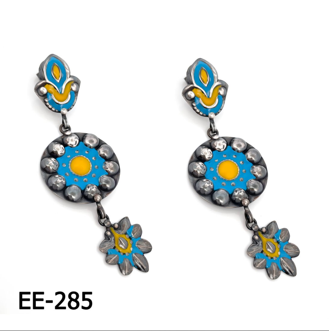 designs in vibrant royal blue and sunny yellow enamel, these earrings are a perfect blend of classic charm and contemporary style.