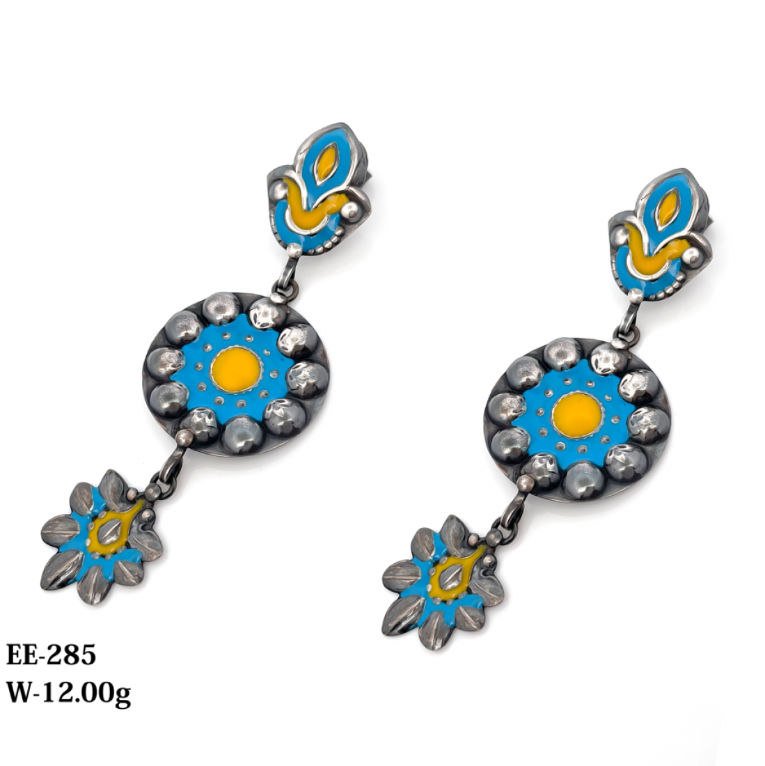 Royal Blue & Yellow Enamel Round & Drop Earrings – 925 Sterling Silver